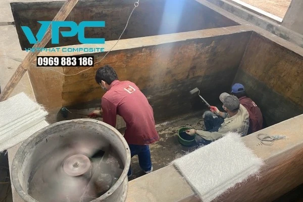 – Ngoài ra, khi thi công bọc phủ cho các bể chứa có độ sâu, kỹ thuật viên cần phải dùng quạt để hút bớt mùi của nhựa và trang bị khẩu trang chống độc khi thi công.