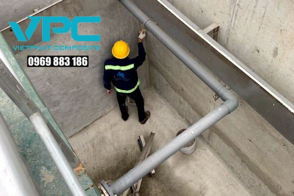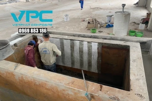 Việc sử dụng vật liệu Composite không chỉ đảm bảo độ bền cho công trình mà còn giúp kéo dài tuổi thọ sử dụng của các bể chứa nước, bể xử lý nước thải, đường ống và thiết bị công nghiệp. Điểm nổi bật của bọc phủ FRP nằm ở khả năng chịu được hóa chất mạnh, nhiệt độ cao và áp suất lớn, điều mà các vật liệu chống thấm truyền thống khó đạt được.