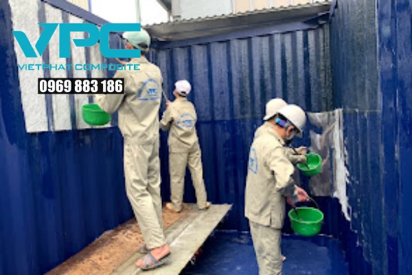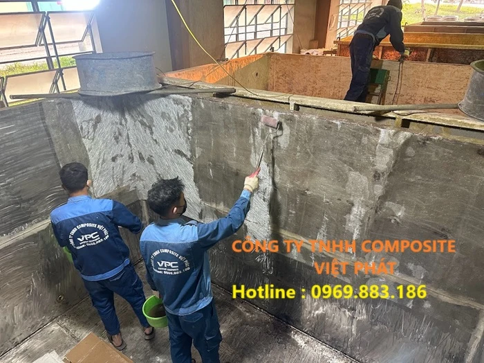 Pha trộn nhựa Composite với các phụ gia tăng cường để đạt tính năng chống hóa chất, chịu nhiệt và chịu lực tốt nhất. Phủ lớp nhựa Composite lên bề mặt đã được vệ sinh, sử dụng con lăn hoặc súng phun tùy vào yêu cầu kỹ thuật.